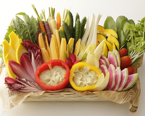 マイクロトマト、ミニキャロット、エシャロット、アンディーブ(白、赤)、ラディッシュ、紅芯大根、もろきゅうり、カラフルミニトマト、金美にんじん