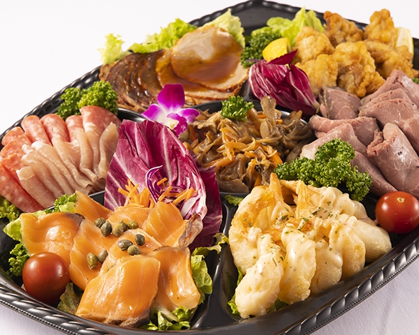 【食材、ポーション】 [M] 約1~3名様分 約300g(お一人様約100g) [L] 約3~4名様分 約400g(お一人様約100g) [LL] 約5~6名様分 約600g(お一人様約100g) ローストビーフ 他6種 【容器サイズ】 M:縦30cm×横30cmプレート L:縦39cm×横28cmプレート LL:縦44cm×横32cmプレート ※写真はLLサイズです。 ※写真はイメージです。 ※仕入状況により内容を一部変更する可能性がございます。