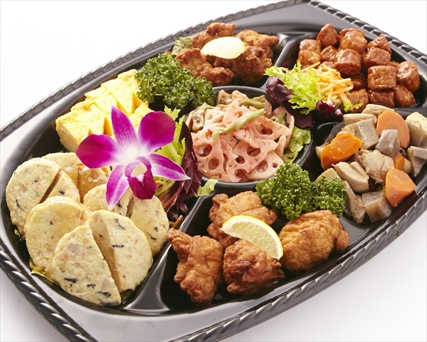 【食材、ポーション】 [M] 60g [L]80g [LL]120g 筑前煮 [M] 3個 [L]4個 [LL]6個 からあげ [M] 4本 [L]5枚 [LL]8枚 厚焼きたまご [M] 60g [L]80g [LL]120g 根菜のきんぴら [M] 8個 [L]10個 [LL]15個 和風肉だんご [M] 1個 [L]2個 [LL]3個 豆腐ハンバーグ 【容器サイズ】 M:縦30cm×横30cmプレート L:縦39cm×横28cmプレート LL:縦44cm×横32cmプレート ※写真はLLサイズです。 ※写真はイメージです。 ※仕入状況により内容を一部変更する可能性がございます。