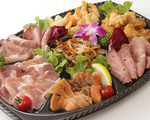 【食材、ポーション】 [M] 3個 [L] 4個 [LL] 6個 海老フリッターマリネ [M] 3枚 [L] 4枚 [LL] 6枚 ローストビーフ [M] 3枚 [L] 4枚 [LL] 6枚 炙りサーモン [M] 3個 [L] 4個 [LL] 6個 チキンフリット [M] 3枚 [L] 4枚 [LL] 6枚 国産生ハム [M] 50g [L] 80g [LL] 120g キノコマリネ 【容器サイズ】 M:縦30cm×横30cmプレート L:縦39cm×横28cmプレート LL:縦44cm×横32cmプレート ※写真はLLサイズです。 ※写真はイメージです。 ※仕入状況により内容を一部変更する可能性がございます。