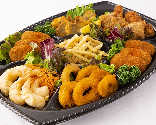 【食材・ポーション】 [M] 3個 [L] 4個 [LL] 6個 エビフリット [M] 3個 [L] 4個 [LL] 6個 いかリングフライ [M] 3個 [L] 4個 [LL] 6個 チキンタツタ [M] 3個 [L] 4個 [LL] 6個 カニクリームコロッケ [M] 100g [L] 150g [LL] 250g フレンチフライ [M] 2カット [L] 4カット [LL] 6カット フィッシュフライ